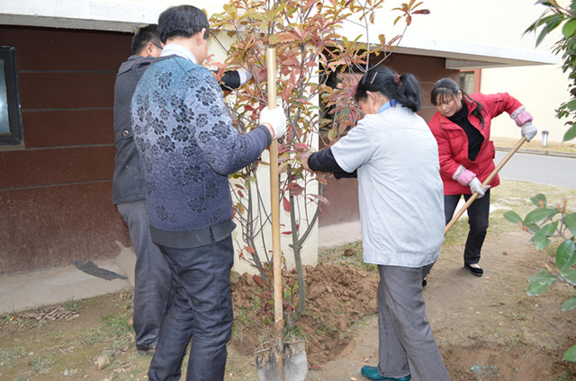 隨著氣溫回暖,萬物復蘇。3月11日,物業(yè)管理部組織綠化管理員開展園區(qū)公舍綠化補植工作。