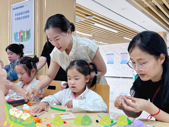 粘土DIY區(qū)同樣妙趣橫生。孩子們在工作人員的指導(dǎo)下發(fā)揮創(chuàng)意,用粘土捏出惟妙惟肖的彩色“粽子”,在實(shí)踐中感受文化魅力,收獲自信與成就感。