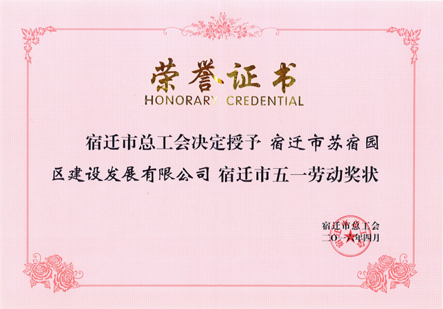 榮獲宿遷市“五一勞動獎狀”先進單位并受到表彰,是公司在園區(qū)工委、管委會的正確領導下,全體員工齊心協(xié)力、奮力拼搏下,共同努力的結果。近年來,公司緊緊圍繞園區(qū)經(jīng)濟發(fā)展戰(zhàn)略目標和中心工作,銳意進取,改革創(chuàng)新,扎實推進各項目標任務,努力推動經(jīng)營理念大變革,服務方式大創(chuàng)新,管理水平大提升,取得了顯著成效。公司將以此為動力,繼續(xù)集中全部精力,一心一意抓發(fā)展,凝心聚力促跨越,突出重點,強化措施,全力抓好各項工作落實,為促進園區(qū)經(jīng)濟持續(xù)健康發(fā)展和社會和諧穩(wěn)定作出更多更大的貢獻。